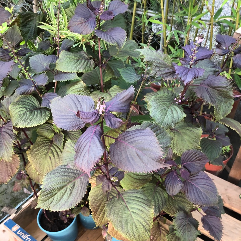 綦林園 青紫蘇5吋盆高cm100元 株皺葉型的青紫蘇葉質細軟 香味清新 很適合生吃 拌沙拉或配生魚片食用 Facebook